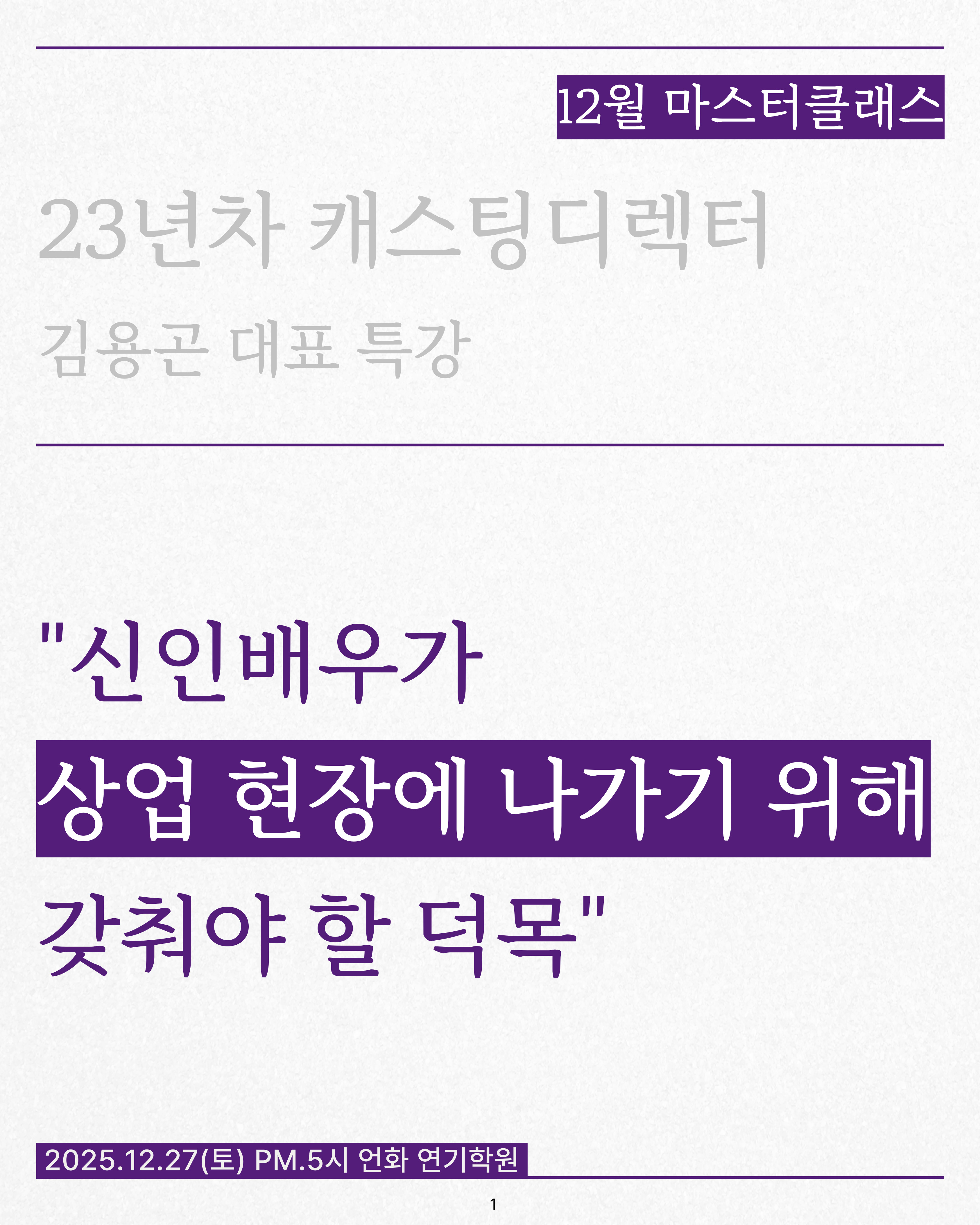 12월 김용곤 캐스팅디렉터 특강